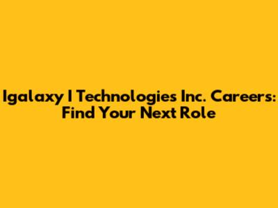 Igalaxy I Technologies Inc. Careers: Find Your Next Role